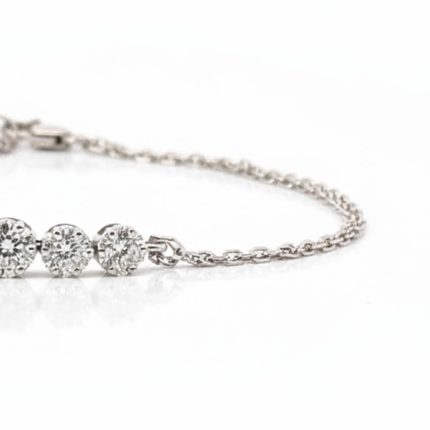 Crafted in polished 18K white gold with a gold weight of 2.61 grams, this bracelet features 0.45 carats of precisely matched round brilliant lab-grown diamonds. Selected in luminous E–F color and VVS–VS clarity, each diamond delivers exceptional sparkle and clarity, forming a graceful ribbon of light around the wrist.