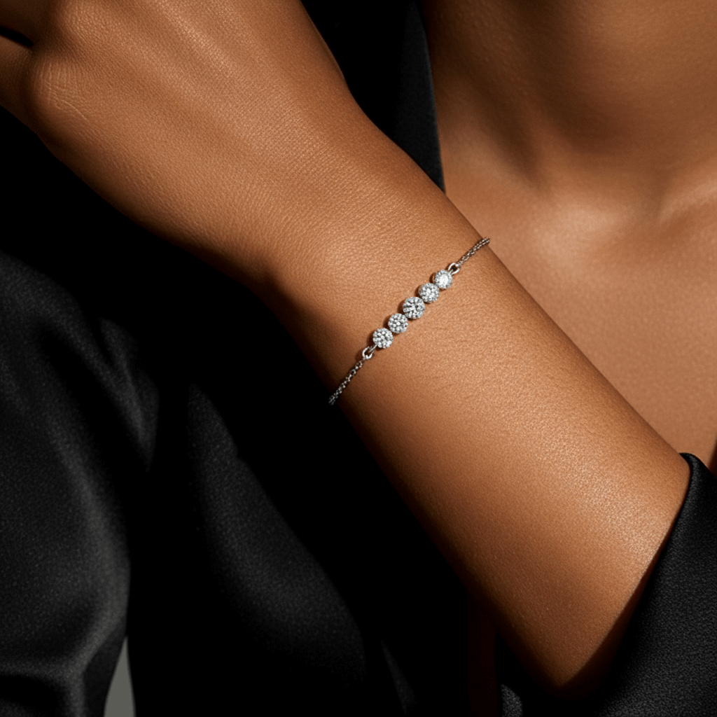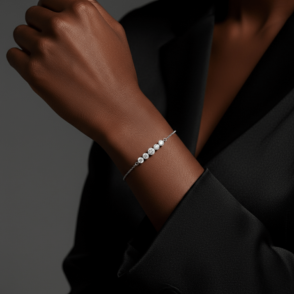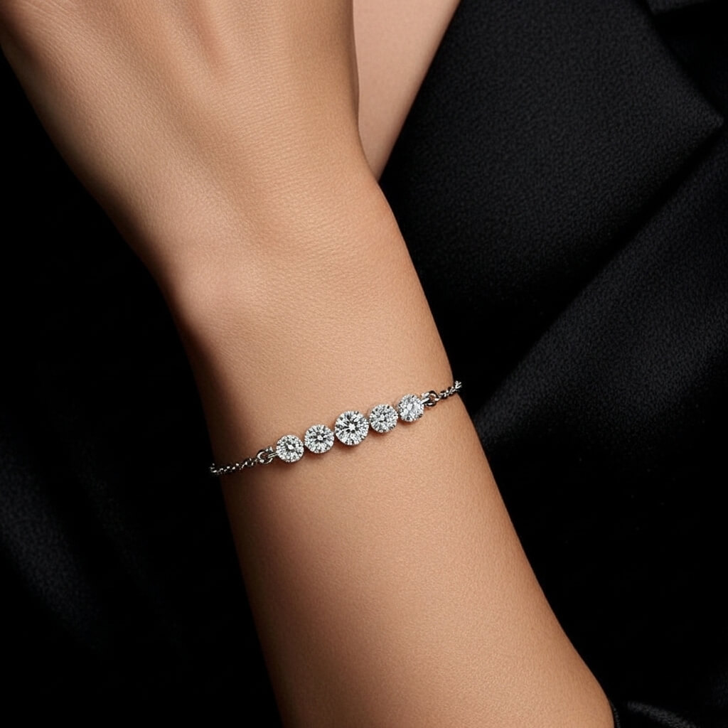 Refined and effortlessly radiant, this 0.45 Carat Lab-Grown Round Brilliant Diamond Bracelet in 18K White Gold is designed for timeless everyday elegance.