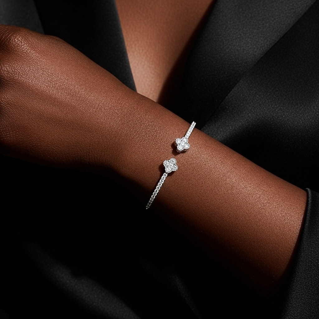 Sleek, refined, and effortlessly radiant, this 0.79 Carat Lab-Grown Round Brilliant Diamond Bangle in 18K White Gold is designed to deliver structured elegance with timeless brilliance.
