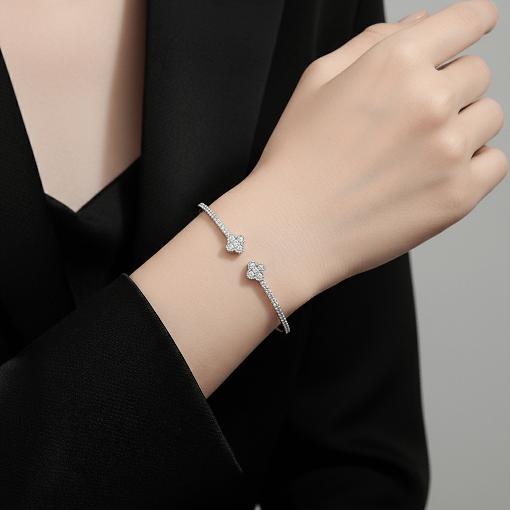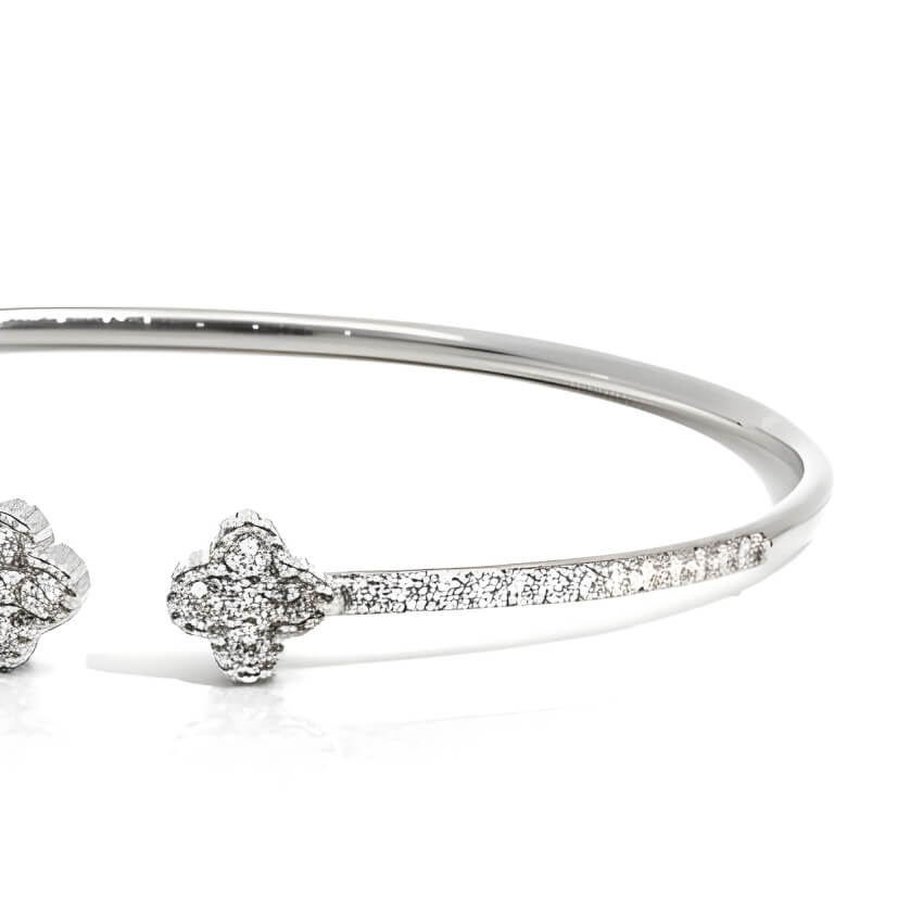 Crafted in polished 18K white gold with a gold weight of 6.16 grams, this bangle features 0.79 carats of precisely set round brilliant lab-grown diamonds. Selected in luminous E–F color and VVS–VS clarity, each diamond offers exceptional sparkle and clarity, creating a refined ribbon of light across the wrist.
