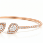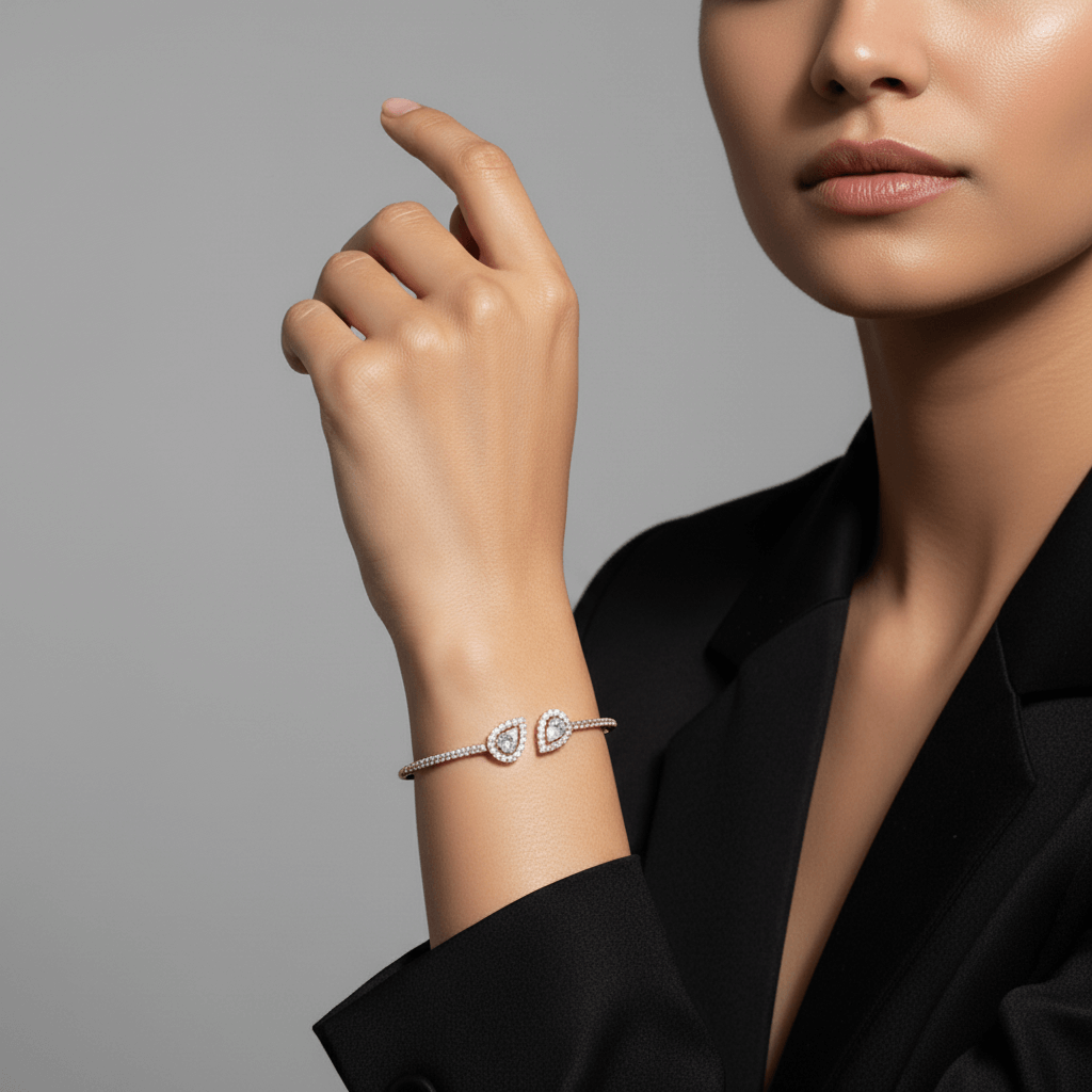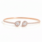 The structured bangle silhouette offers a sleek, contemporary look while maintaining comfortable wear. The soft blush tone of rose gold enhances the diamonds’ brilliance, making it perfect for stacking or wearing alone as a refined statement piece.