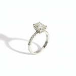 Crafted in polished 9K white gold with a gold weight of 3.37 grams, this ring features a striking 3.02 carat radiant cut lab-grown diamond at its center, complemented by 0.52 carats of precisely set accent diamonds. Selected in luminous F color and VVS2 clarity, the diamonds deliver exceptional sparkle, fire, and outstanding clarity.