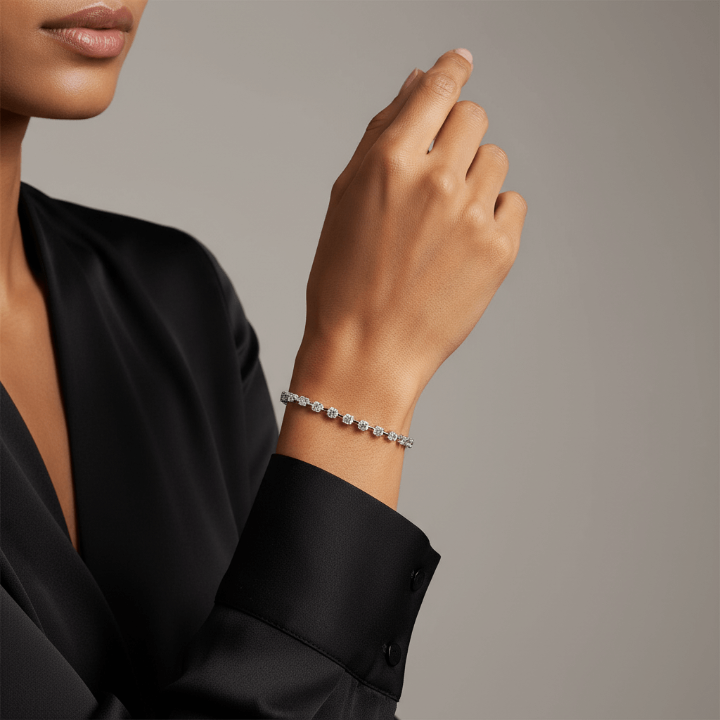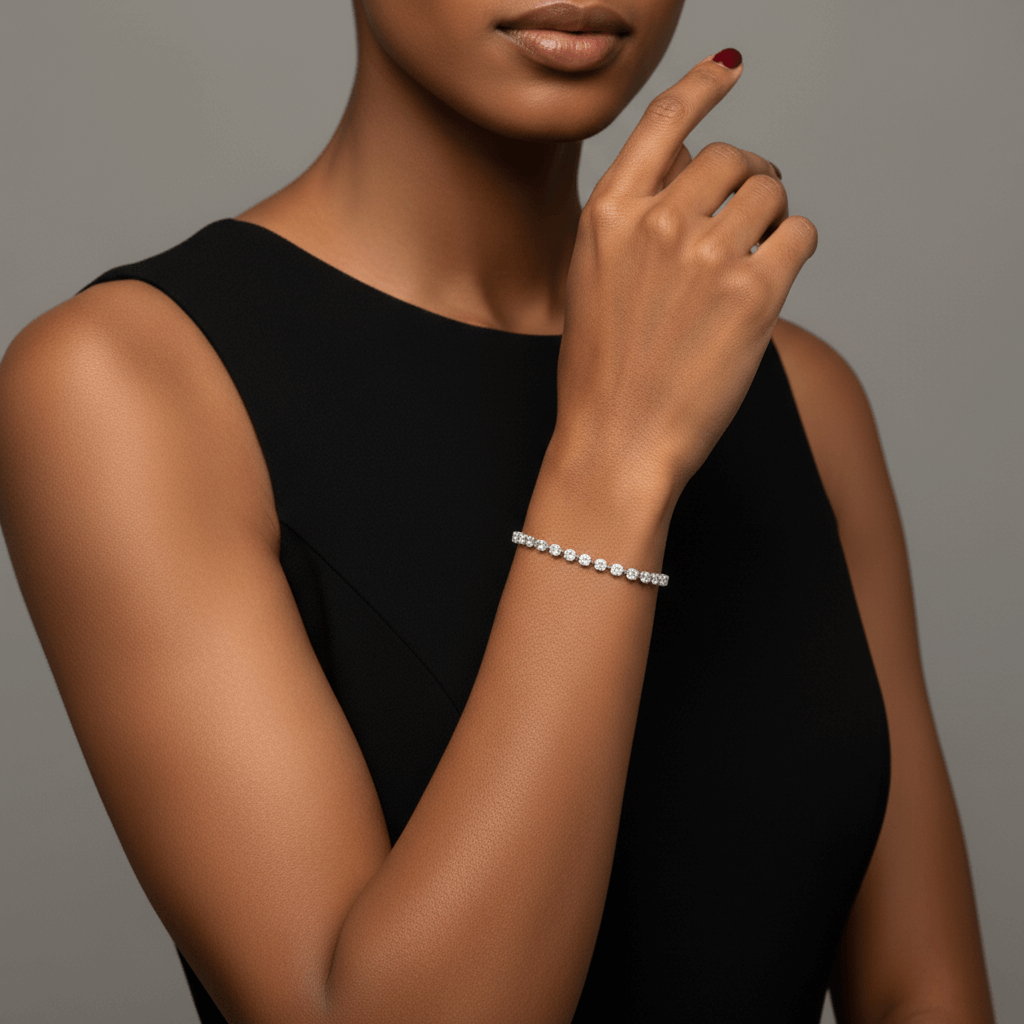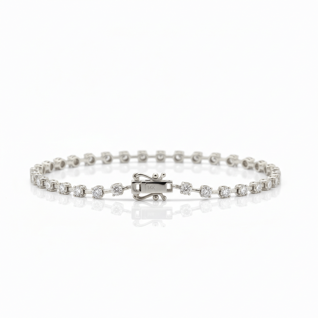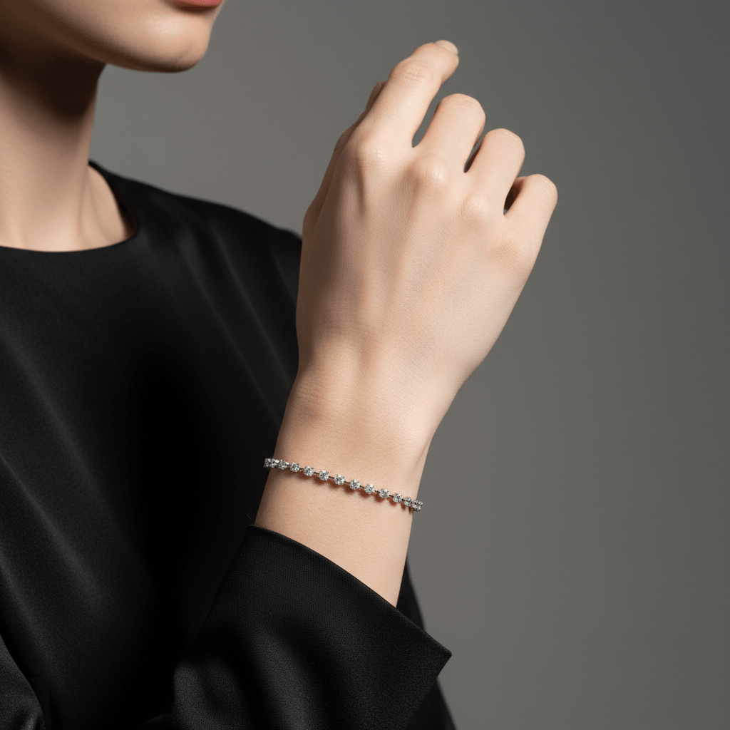 The balanced design provides noticeable brilliance while maintaining fluid movement and comfortable wear. Perfect for everyday elegance, anniversary gifting, or as a refined personal investment, this tennis bracelet embodies sustainable craftsmanship paired with timeless luxury.