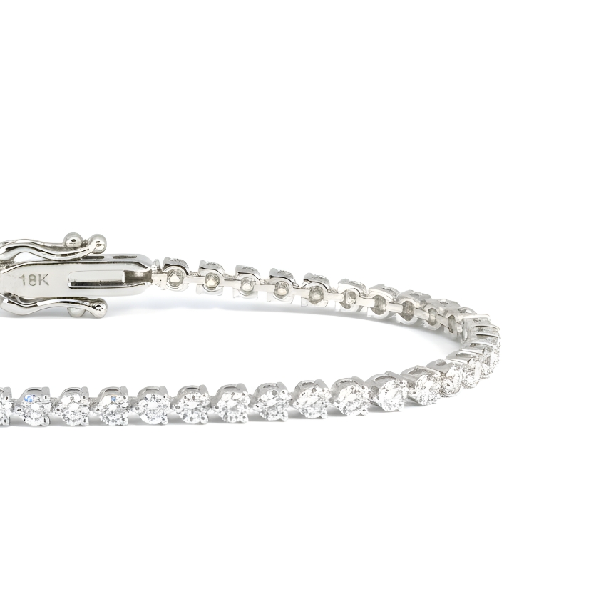Expertly crafted in polished 18K white gold with a gold weight of 8.98 grams, this bracelet features 4.56 carats of meticulously matched round brilliant lab-grown diamonds. Selected in luminous E–F color and VVS–VS clarity, each diamond offers exceptional fire and clarity, forming a seamless ribbon of brilliance around the wrist.